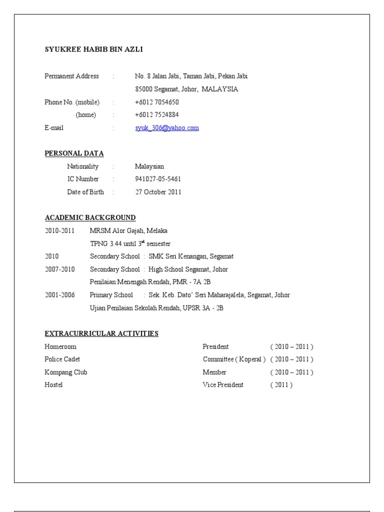 Create the Perfect Job-Worthy Resume to Attract More Attention. Jangan terlalu rapat untuk setiap baris ayat. Sejak dari sekolah lagi saya telah berusaha membentuk kerjaya untuk menjadi Penolong Pegawai Kesihatan yang akan berkhidmat kepada negara.